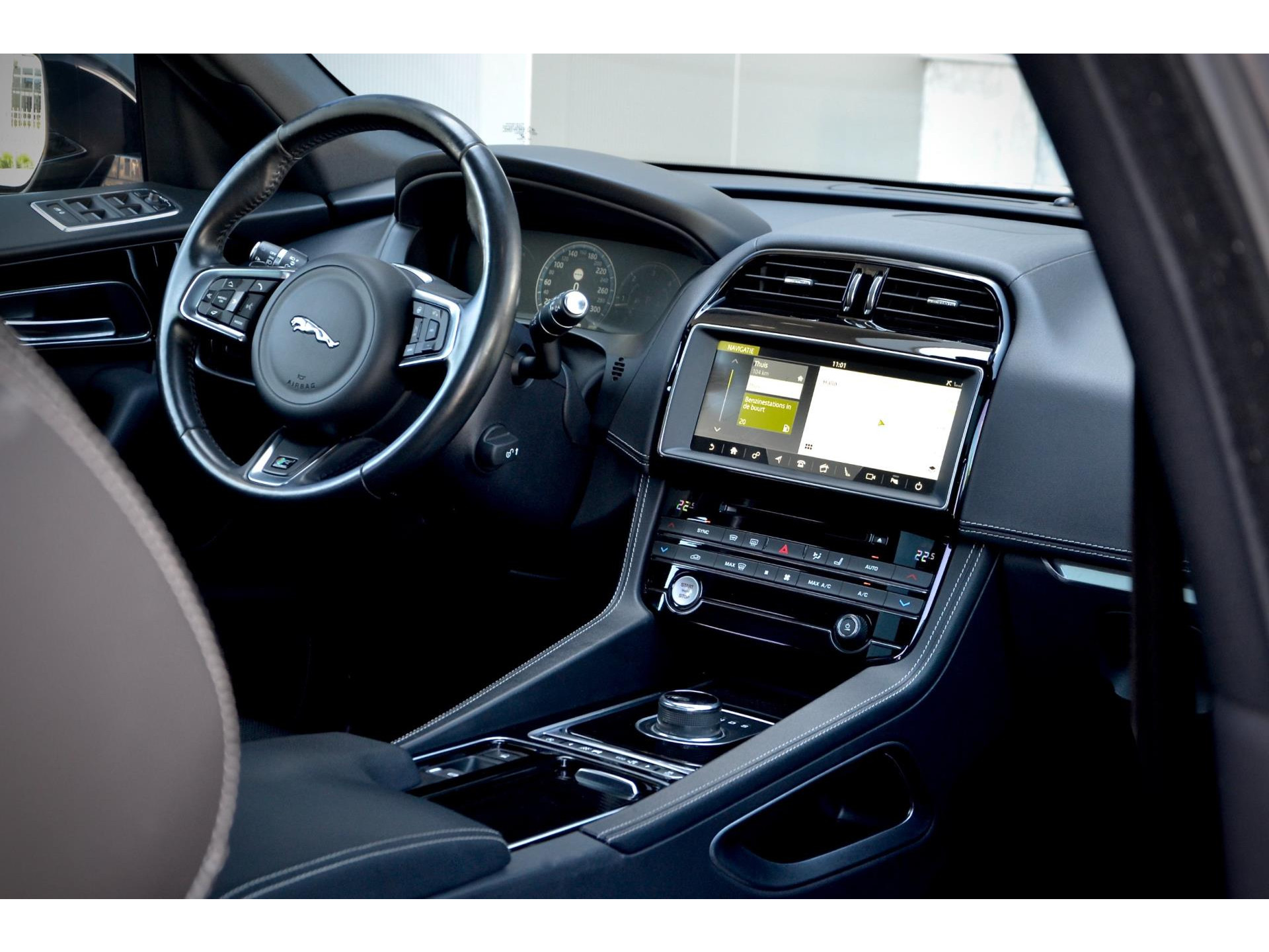Deze perfect uitgevoerde Jaguar F-Pace is origineel Nederlands geleverd en verkeerd in zeer nette staat. De volledige wagendocumentatie is incl de twee sleutels aanwezig. Greep uit de optie's; Glazen Elektrisch schuif/kanteldak, R Sport Pakket, 20 Inch L.M. Velgen, Black Pack, Vol lederen interieur, Elektrisch verstelbare voorstoelen waarvan de bestuurdersstoel met geheugen, Meridian Sound Systeem, Keyless entry/go, Elektrische achterklep, Bi-Xenon verlichting, Achterbank verwarming, enz... Mocht deze auto uw interesse hebben dan mag u contact opnemen met Björn Kragt 06-53868027 (tot 22.00) . Kijk voor meer foto's op www.kragtautomotive.nl. Inruil en garantie mogelijk vraag naar de voorwaarden. Aan deze advertentie kunnen geen rechten worden ontleend. Alle moeite is genomen om de informatie op deze internetsite zo actueel mogelijk weer te geven. Fouten zijn echter niet uit te sluiten. Vertrouw daarom niet alleen op deze informatie, maar controleer bij aankoop de zaken die uw beslissing zouden kunnen beïnvloeden.